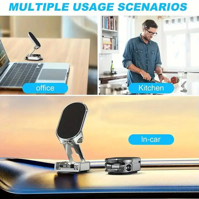 Folding Magnetic Bracket: Paste on the curved surface, stable upgrade, strong suction force, unobstructed view. Retractable, foldable in one second, small and stable, easy to fold when not in use, gets rid of clutter, compact and does not take up space.