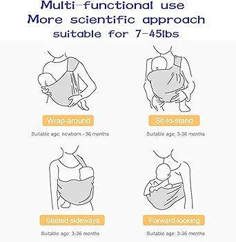 Easy to carry: With slings and cloths, you can pamper your little one on a busy day while keeping your hands free for other things. The baby carrier from newborn to toddlers is lightweight and easy to fold and carry. This baby carrier can be used as a nursing blanket. Mothers can breastfeed their babies anytime and anywhere. It is also very convenient to breastfeed your baby when you are not at home, and avoid embarrassment.