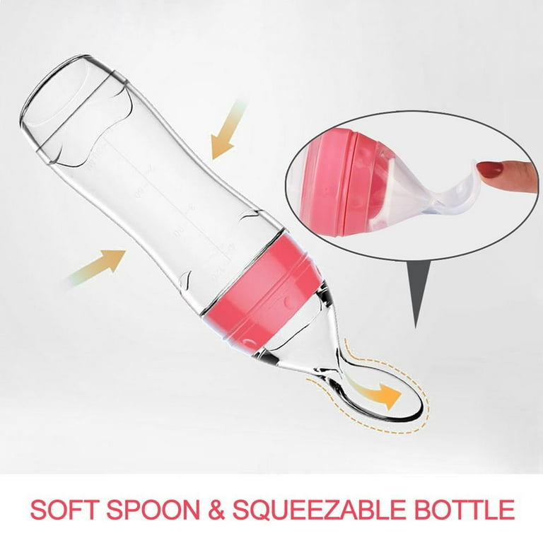 Simply fill the bottle with the desired amount of baby food or cereal,milk and give the soft silicone bottle a gentle squeeze , Can be used for feeding juices,milk, cereal, mashed rice, veggies and all kinds of semi-solids.