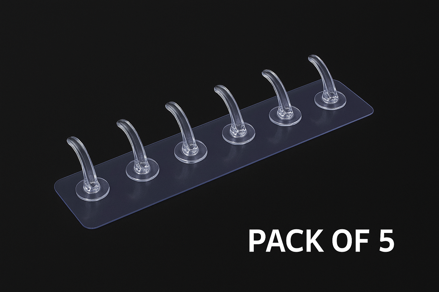 Keep your space clutter-free and stylish with this transparent multi-hook organizer strip (Pack of 5). Designed with six strong and durable hooks, it offers a sleek and modern solution for hanging everyday essentials like keys, kitchen tools, bathroom accessories, jewelry, or lightweight clothing items. Made from premium quality transparent material, it blends seamlessly with any wall or background, giving a clean and minimalistic look to your home or office. Its self-adhesive backing ensures easy installation without drilling or damaging your walls, while the curved hook design provides a firm grip to hold items securely in place. Perfect for small spaces, apartments, or anyone looking for a neat, space-saving storage solution.