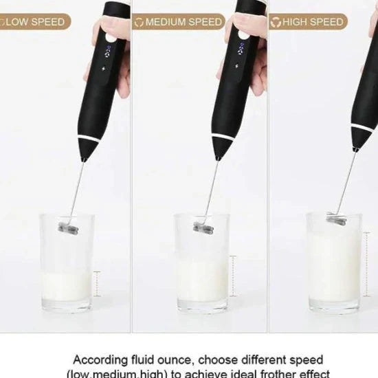 Multi-Purpose: 2 Stainless steel whisks such as egg beating, mixing protein shakes, milk, coffee, hot chocolate, and others Stylish Design: soft-touch ergonomic handle, ease of hand fatigue and more comfortable use. USB Rechargeable Milk Frother: this frothing wand is powered by rechargeable Li-ion battery, comes with USB charging cable. You can connect it to a USB power adapter, PC, laptop, letting you charge anywhere without hassle battery replacement. Multiple Whisking Speeds:3 Whisking Speeds allow you to choose a proper speed to get your desired amount of foam. Produce creamy froth in just 15 - 20 seconds. Portable: take it away on holidays or camping trips to add something special to your hot drinks Easy to clean: run the frother under warm running water or occasionally dip the wand in hot soapy water before rinsing. Turn the coffee frother on again to spin dry.