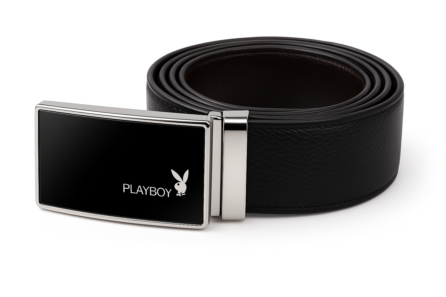 This Playboy black leather belt is a perfect blend of elegance, durability, and modern style. Crafted from high-quality textured leather, it offers a smooth, long-lasting finish that complements both formal and casual outfits. The centerpiece is its sleek rectangular glossy buckle, finished in polished silver-tone metal, engraved with the iconic Playboy logo and brand name, giving it a luxurious and stylish appeal. Designed for comfort and sophistication, the belt’s classic black color and refined detailing make it versatile enough to pair with suits, trousers, or jeans. Whether for daily wear or special occasions, this premium belt adds a bold, confident touch to your wardrobe, reflecting both personality and class.