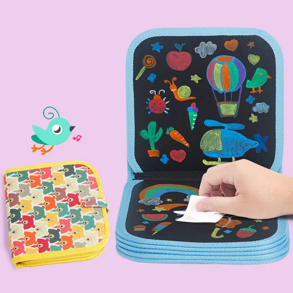 10 Pages Erasable Doodle Slate Painting Kit for Kids Drawing Book with Wet Wipes & Colors for Kids In just Rs 1299 with 10 Days Money Back Guarantee for Customer Satisfaction.