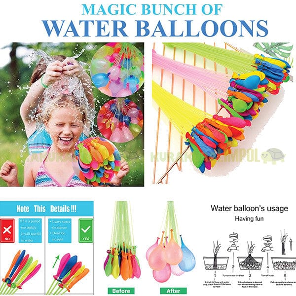 Tired of spending hours filling and tying water balloons one by one? Now you can fill and tie 111 water balloons (3 bunches of 37) in less than a minute with this time-saving, fun-packed solution!