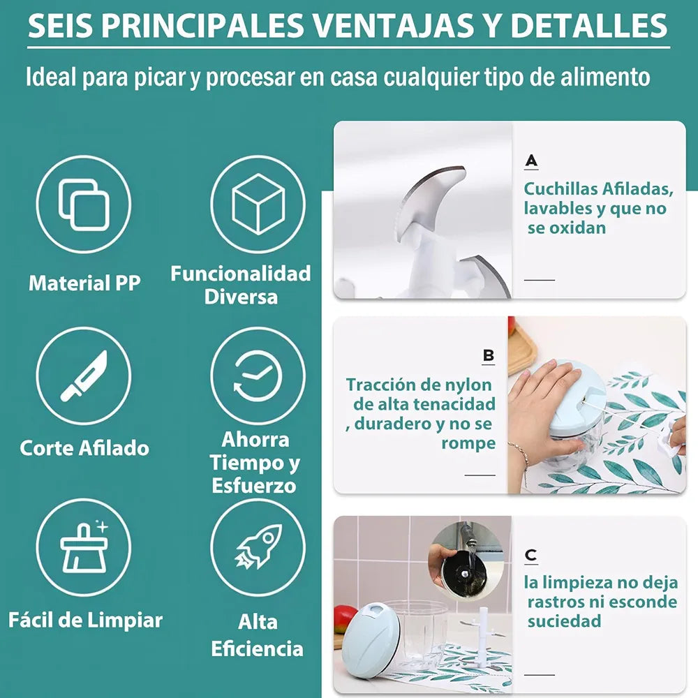Safe Material Mini Chopper: The pull chopper is made from BPA free PS plastic, the blades are made from stainless steel.