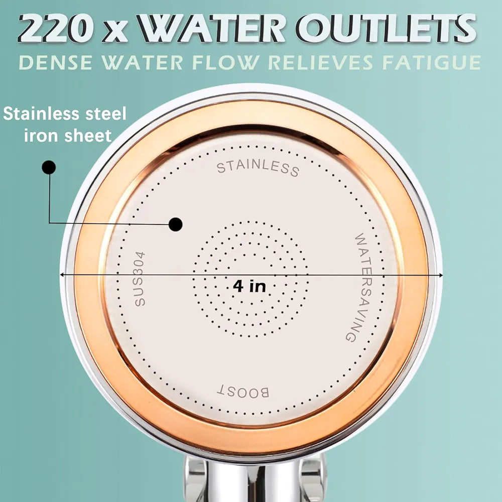💖【Silver Shower Head with Handheld】The handheld showerhead is sprayed with silver paint and then electroplated and polished, making the appearance more minimalist and good-looking. The back and front of the showerhead are paired with polished orange paint, making the minimalist appearance more fashionable and luxurious. 220 water outlets make the water flow more delicate, like shower heads with handheld spray combo.