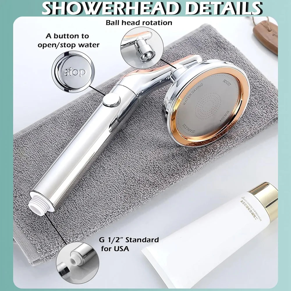 💖【High-Pressure Shower Head】The internal pressure-boosting design of the showerhead makes the water flow more powerful, eliminating the embarrassment of showering due to low water volume. The showerhead has a spherical adjustment inside, which can rotate at any angle. Coupled with an ergonomic handle, it makes showering more fun and enjoyable whether hanging or handheld.