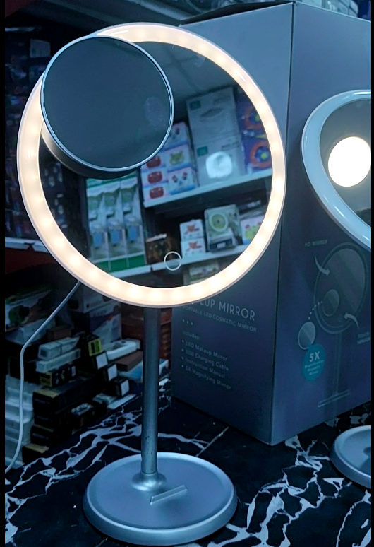 𝐑𝐎𝐔𝐍𝐃 𝐌𝐀𝐆𝐍𝐈𝐅𝐘𝐈𝐍𝐆 𝐌𝐈𝐑𝐑𝐎𝐑: This pretty round magnifying mirror is surrounded by a ring LED strip. This personal mirror allows you to clearly focus on details such as applying contact lenses, eyelashes and so on