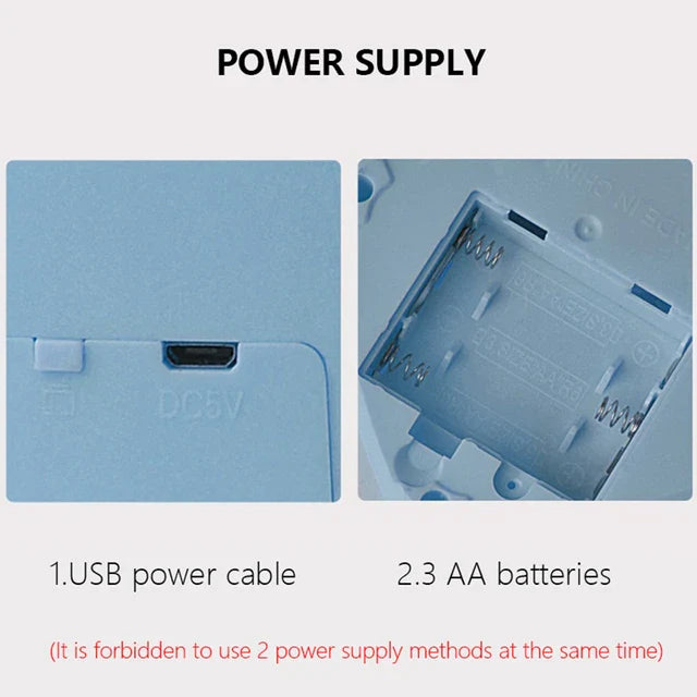 Power supply mode: can use three AA batteries (not included) or USB cable power supply (the two methods cannot be used at the same time)