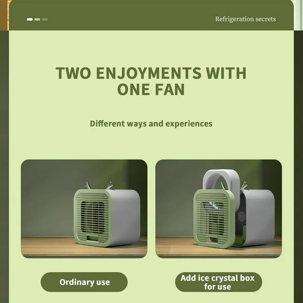 Stay cool, refreshed, and comfortable with this Portable Mini Air Cooler & Humidifier, designed to give you instant relief during hot days and stuffy nights. Its 2-in-1 function works as a personal cooling fan and air humidifier, ensuring that the air around you stays cool, moist, and breathable.