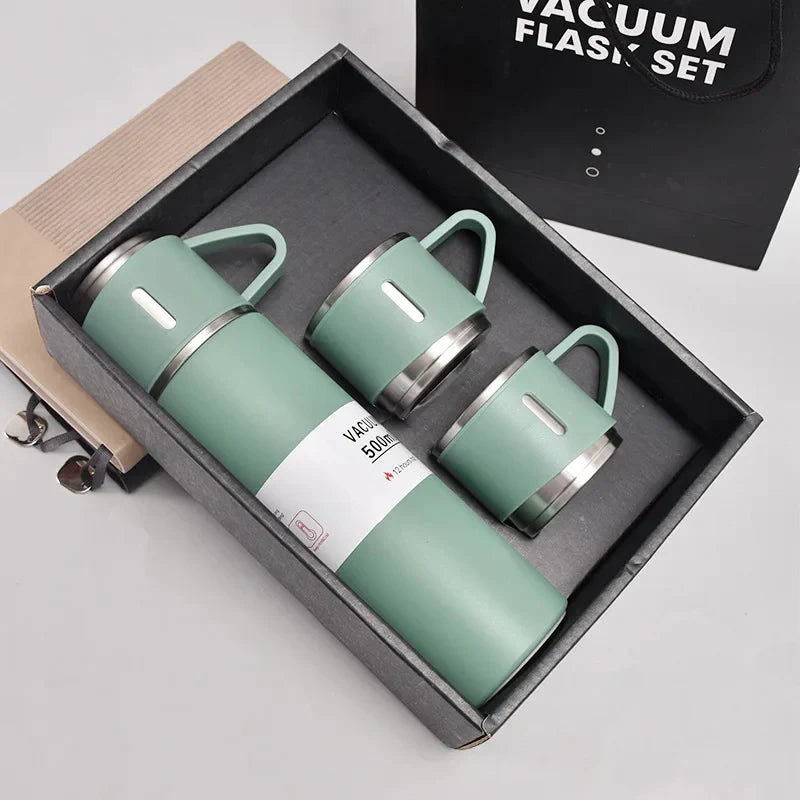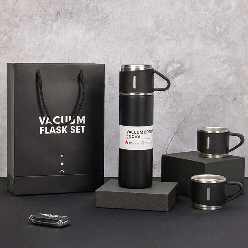 THERMOS WITH 2 CUPS: Our travel mug gift set includes one portable hot drink cup and 2 additional lids that double as small heat insulation cups to share that perfect temperate beverage with your loved ones. Perfect gift for coffee & tea lovers.