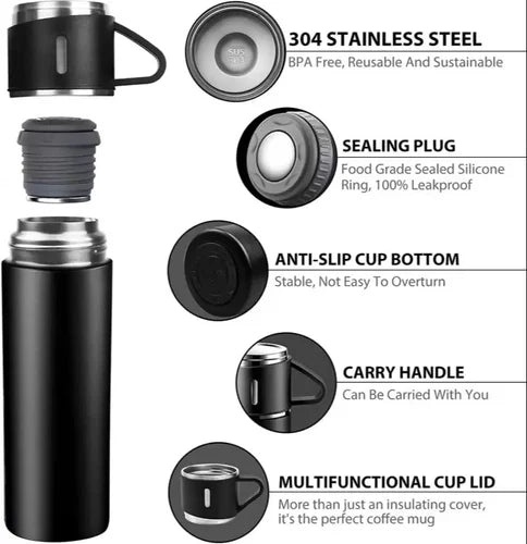 FOR HOT & COLD DRINKS: The Vacuum Stainless Steel Bottle is the perfect everyday travel mug for your hot & cold beverages. For tea & coffee bottle, designed with high-quality 304 stainless steel, maintains your beverage's temperature for up to 8 HOURS!