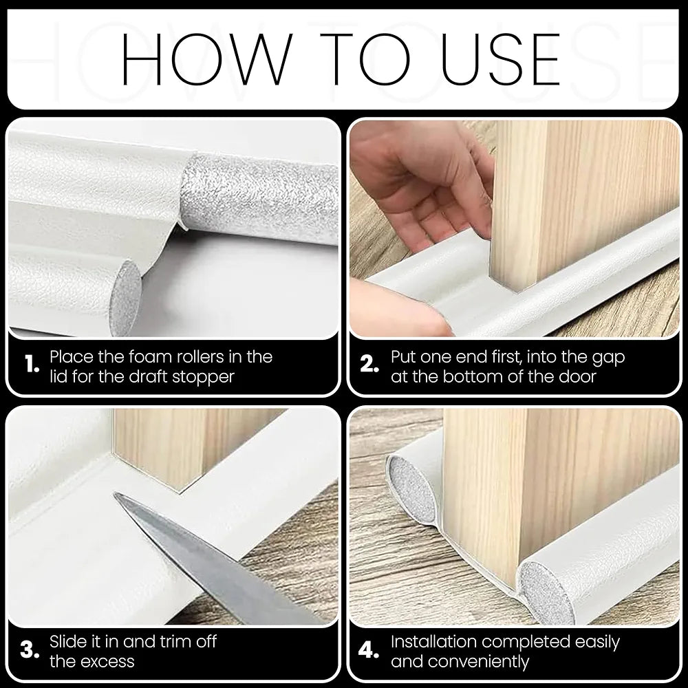 Door Protector 42 Inch Under Door Draft Stopper is a double sided insulating device for doors and windows the fabric draft stopper sleeve holds foam cylinders on opposite sides of a door, creating an airtight, draft-proof seal.